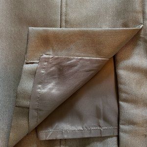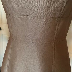 This dress couldn't be more adorable! It's a shimmery taupe color, has a stunning fit with the cute fabric flower on the front lapel. Only selling because it doesn't fit me any more. I used to receive so many compliments on it. It's unique so you don't have to worry about someone else showing up to an event in the same dress. Size 4. Dry clean only. Bust is a 34.