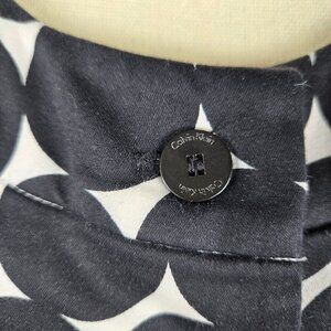 Calvin Klein Size 6 Black Polka Dot Fit & Flare Dress Button Front Sleeveless
