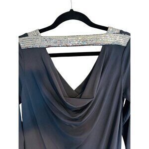 Calvin Klein Size 6 Grey Draped Dress With Sequined Neckline