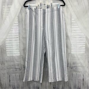 Calvin Klein Size 8 White Black Striped Cropped Linen Pants Pockets 20" Inseam