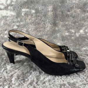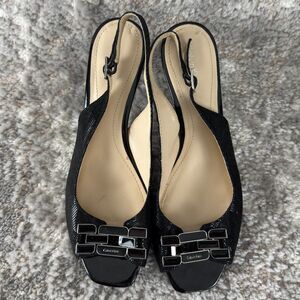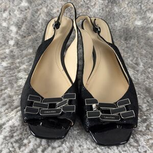 Calvin Klein Size 8.5 Black Peep Toe Sling Back High Heels Shoes Textured