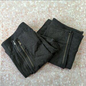 Calvin Klein Size L 2 Pr Black Gray Heathered Knit Leggings Zipper Hems New