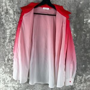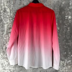 Calvin Klein Size L Ombre Casual Button Top Red White Long Sleeve Collar Shirt