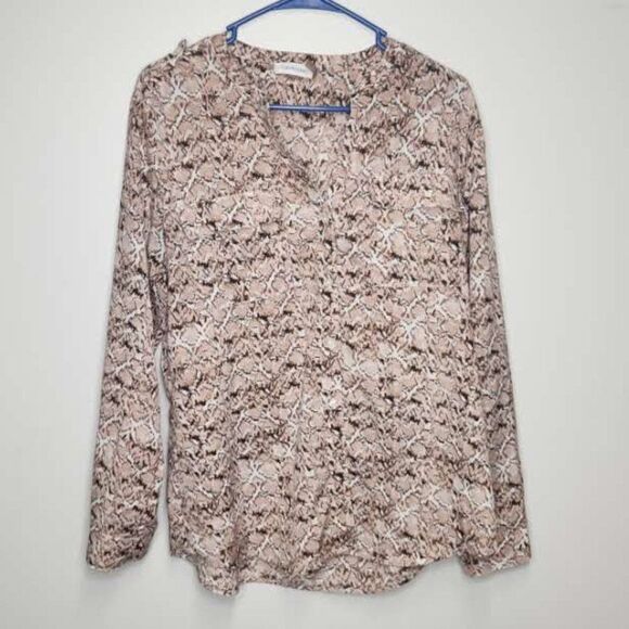 Calvin Klein Size Large Snakeskin Print Modern Essentials Button Blouse Womens
