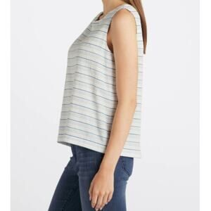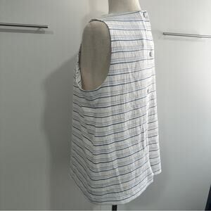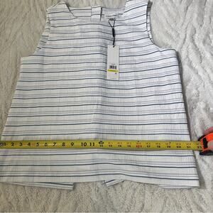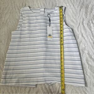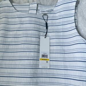 Calvin Klein Size M White Blue Striped Top NWT Back Buttons Business Casual Chic