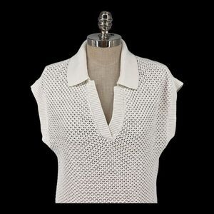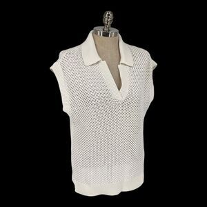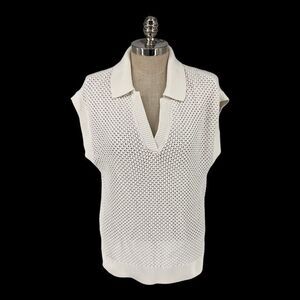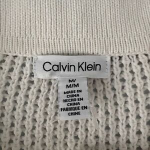 Calvin Klein Size Medium Ivory 100% Cotton Open Weave Sweater Preppy