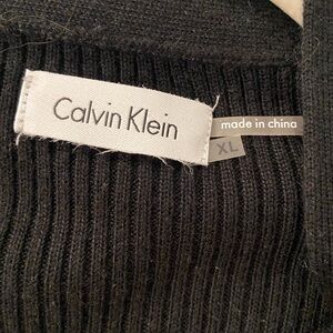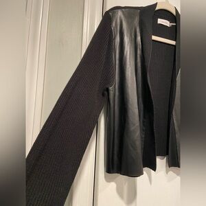 Calvin Klein Size XL Black Ribbed Knit Faux Leather Panel Open Front Cardigan