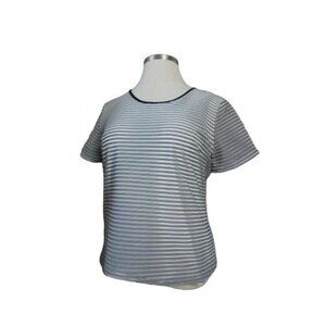 Calvin Klein Size XL Unique Sheer Sleeve Striped Blouse Top