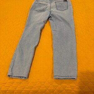 Size 12, stretchy. Light blue denim. Limited wear. Ankle length