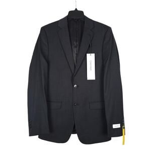 Calvin Klein Skinny-Fit Stretch Wool Suit Jacket Black Brown Mini Check 40L NWT