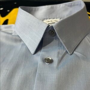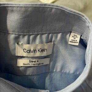 Sleek and sophisticated Calvin Klein dress shirt. Sky blue hue adds elegance. Ideal for formal and casual settings.