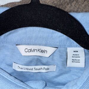 Elegant sky blue polo by Calvin Klein. Ideal for everyday style. Small stain shown in last photo.