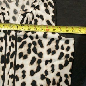 Calvin Klein Sleeveless Animal Print Blouse... Does not button up in front. does not button up at all. center seam is just an accent.