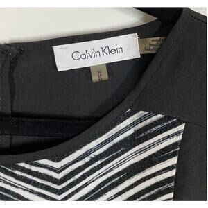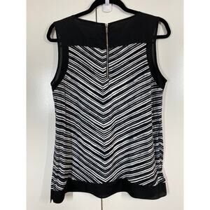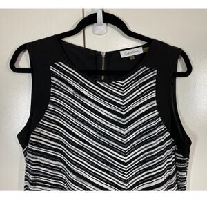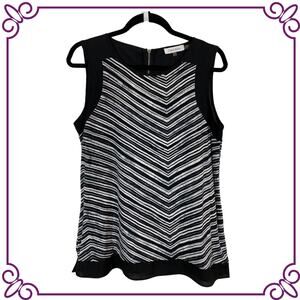 Calvin Klein Sleeveless Black & White Chevron Stretch Tank Bouse Size Medium