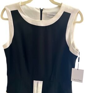 Calvin Klein Sleeveless Black White Knee Length Dress Sz 10 New With Tags