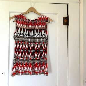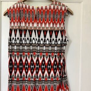 Calvin Klein Sleeveless Blouse Abstract Geometric Orange Tan Black White Ikat