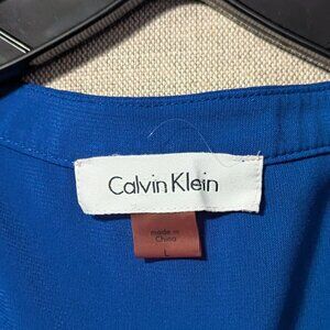 Elevate your style with this gorgeous Calvin Klein sleeveless top! The stunning cobalt blue is accented with bold black trim on the shoulders and down the front for a contemporary edge. Its soft, flowy design drapes beautifully, making it both comfortable and chic. This versatile blouse is perfect for a day at the office or a night out with friends. A must-have staple for any modern wardrobe.