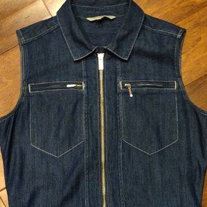 Calvin Klein Sleeveless Collared Full Zip Denim Dress SIZE SMALL