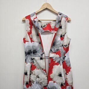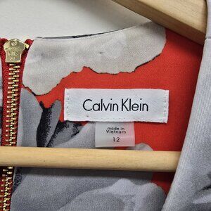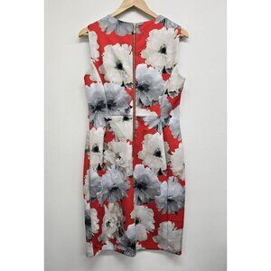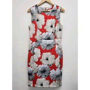 Calvin Klein Sleeveless Floral Scuba Sheath Dress Womens Size 12 Red Orange EUC