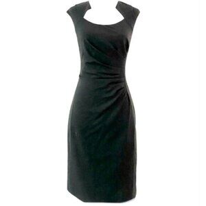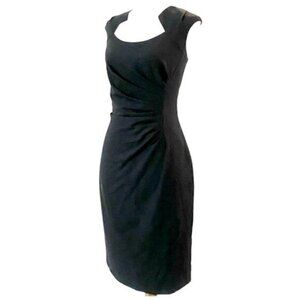 Calvin Klein Sleeveless Horseshoe Neckline Black Ruched Woven Dress Size 6