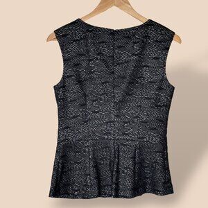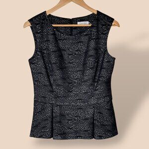 Calvin Klein Sleeveless Peplum Top Black Lace Illusion Zip Back Women's Small - Preowned in excellent used condition.