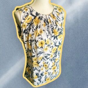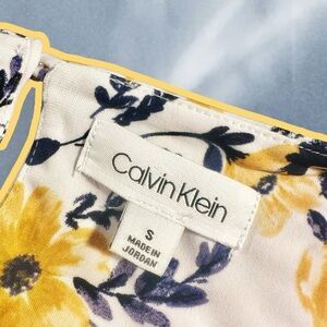 Calvin Klein ‘Sleeveless Pleat Neck Yellow Floral Print Knit Top’ Size Small