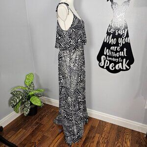 Calvin Klein Sleeveless Retro Abstract Black And White Maxi Dress Size 12