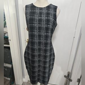 Calvin Klein Sleeveless Sheath Dress Lined Midi Lined Plaid Black Women's Sz 10
