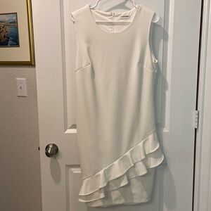 Calvin Klein - Sleeveless White Sheath Dress with Ruffle detail