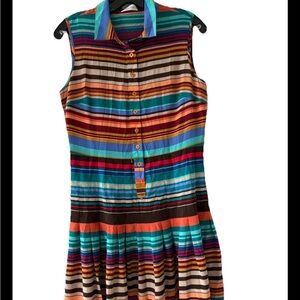 Calvin Klein Sleeveless Women's Sz 8 Bright Striped Fit 'N Flare Dress, made china, 97% polyester, 3% spandex, armpit 19” each side, waist 32”, length 38” multicolor, striped, colorful