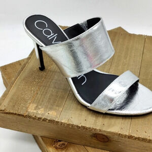 Calvin Klein Slide Heels / Silver Metallic / Size 7.5