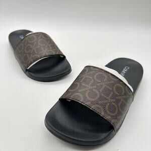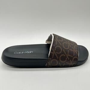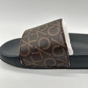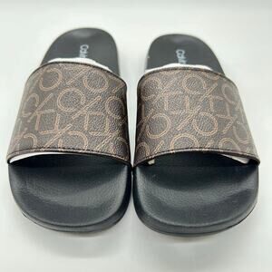 Calvin Klein Slides Womens 5 Brown Logo Print Athens Slip On Comfort NEW