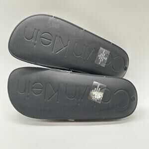 Calvin Klein Slides Womens 5 Brown Logo Print Athens Slip On Slides Comfort NEW With Box