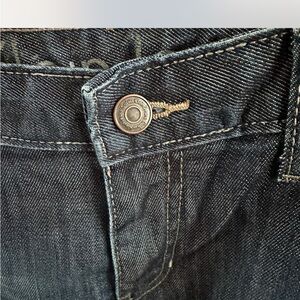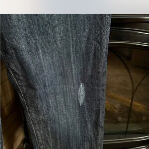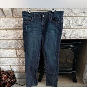 Stylish Calvin Klein Jeans in a dark wash, size 29/8. These jeans offer a classic, versatile look with a touch of modern flair thanks to subtle distressing. Crafted from a comfortable cotton blend with a hint of stretch, they provide a flattering fit. Perfect for everyday wear, these jeans can be dressed up or down.