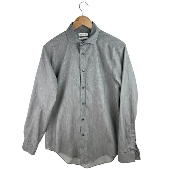 Calvin Klein Slim Fit Performance Non Iron Men Gray Button Down Dress Shirt 15.5