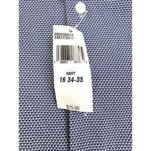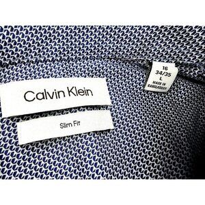 Calvin Klein Slim Fit Size 16 34-35 Large Blue Pattern Spread Collar Shirt NWT