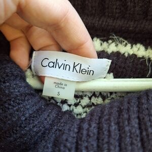 Calvin Klein Small Black And White Striped Cowl Neck Sweater Dress
