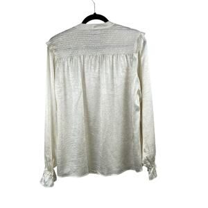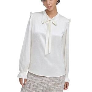 Calvin Klein Smock Textured Tie-Neck Ruffled Cream Long Sleeve Blouse Size XL NWT