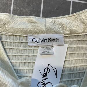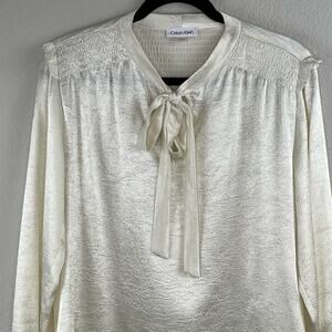Calvin Klein Smock Textured Tie-Neck Ruffled Cream Long Sleeve Blouse XL NWT