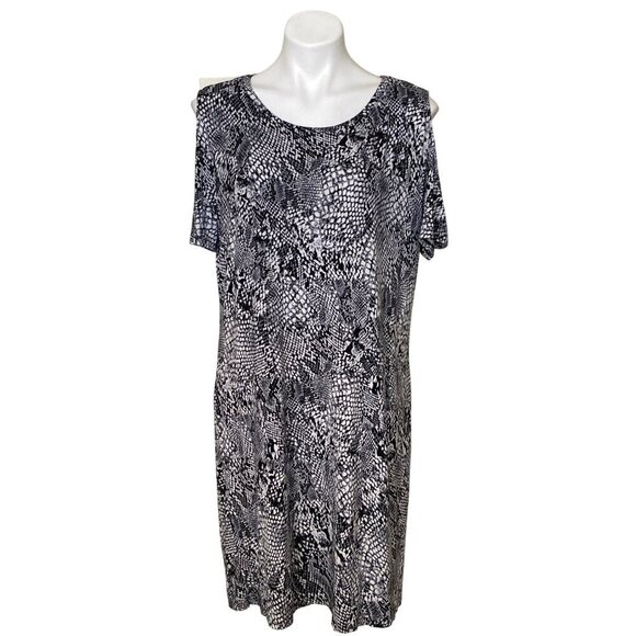 Calvin Klein Snake Print Cold Shoulder Dress, Black White Women's Size L