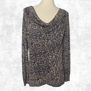 Calvin Klein Snakeskin Blouse – Size L – Animal Print Tie-Neck Top