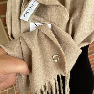 Calvin Klein Soft Beige Fringe Scarf – New with Tags