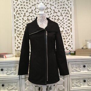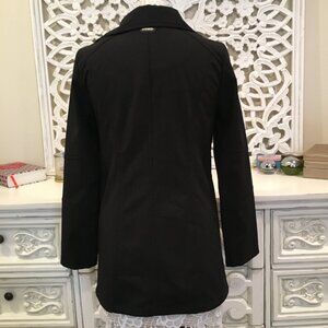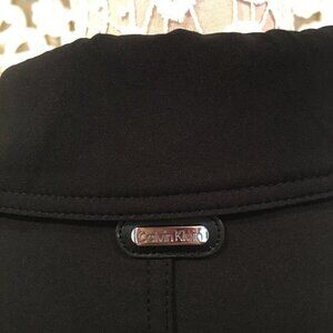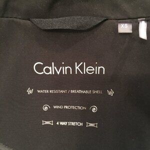 Never worn. Black rain jacket by Calvin Klein. Gorgeous and classy, flawless condition. Wind & water resistant. Asymmetrical zip.