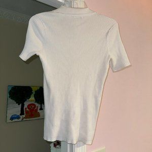 Calvin Klein Soft, Stretchy, and Fitted White Scallop Collar Ribbed Blouse 🤍