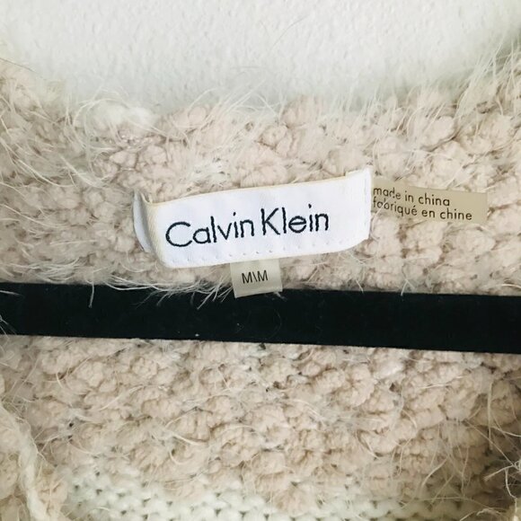 Calvin Klein Soft Striped Eyelash Knit Tan Sweater Size M soooo soft