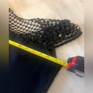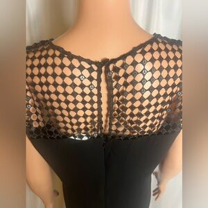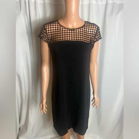 Calvin Klein Solid Black Illusion Sequin Knit Yoke Cap Sleeve Shift Dress Size 8