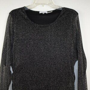 Calvin Klein Sparkle Top Women's Plus Size 2X Black Diamond Dust Sheer Sleeves