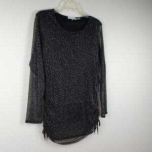 Calvin Klein Sparkle Top Women's Plus Size 2X Black Diamond Dust Sheer Sleeves