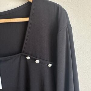 Calvin Klein Square Neck Split Sleeve Pearl Accent Dressy Blouse Top Black 2X