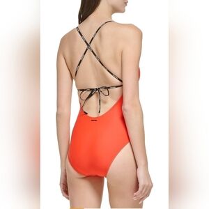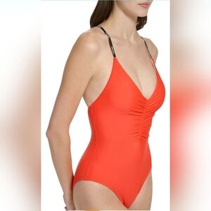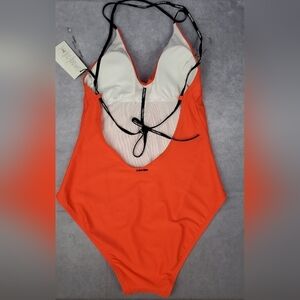 Calvin Klein Standard Tie Back Logo Straps Removable Soft Cups Front Ruching One
